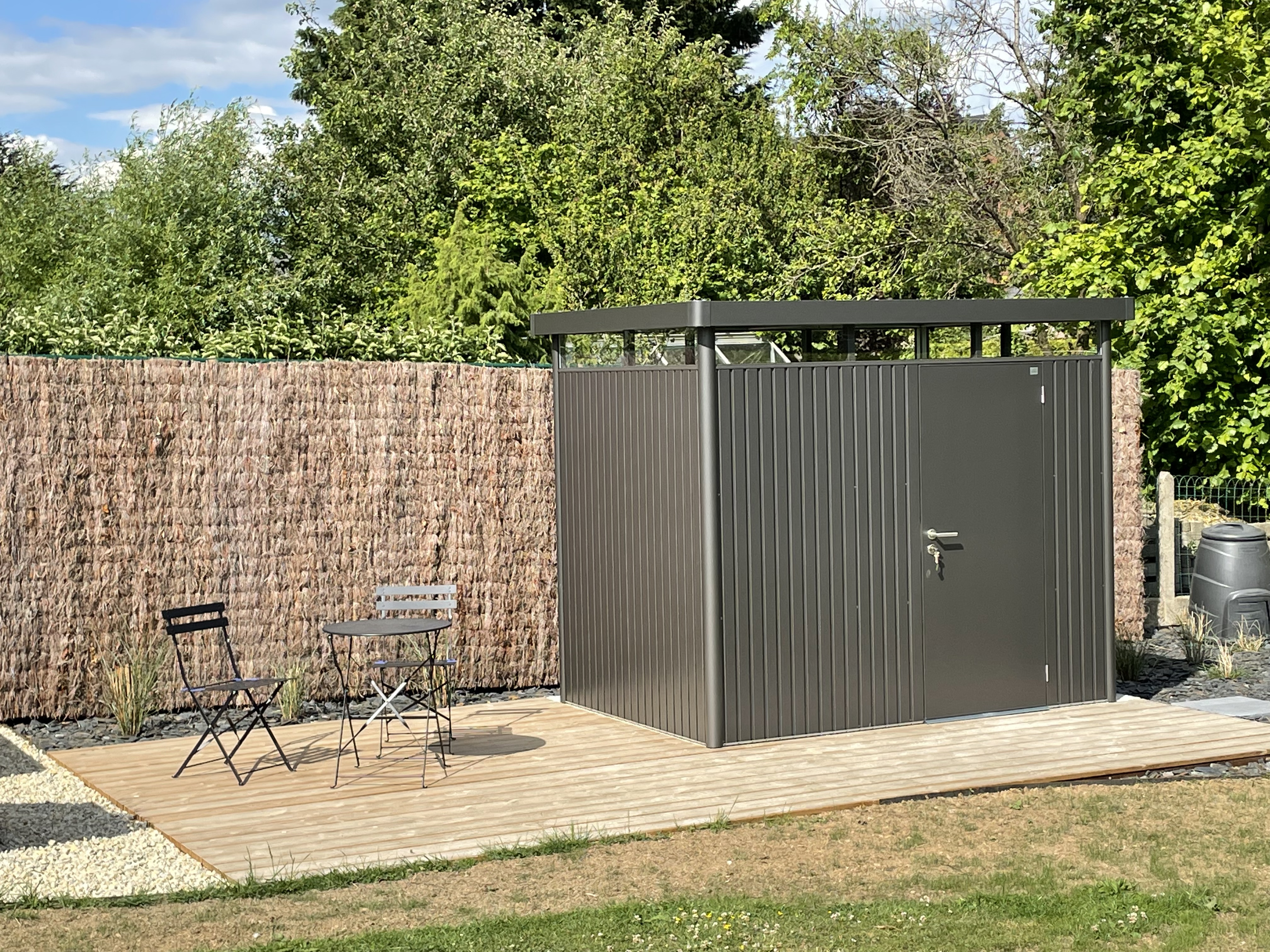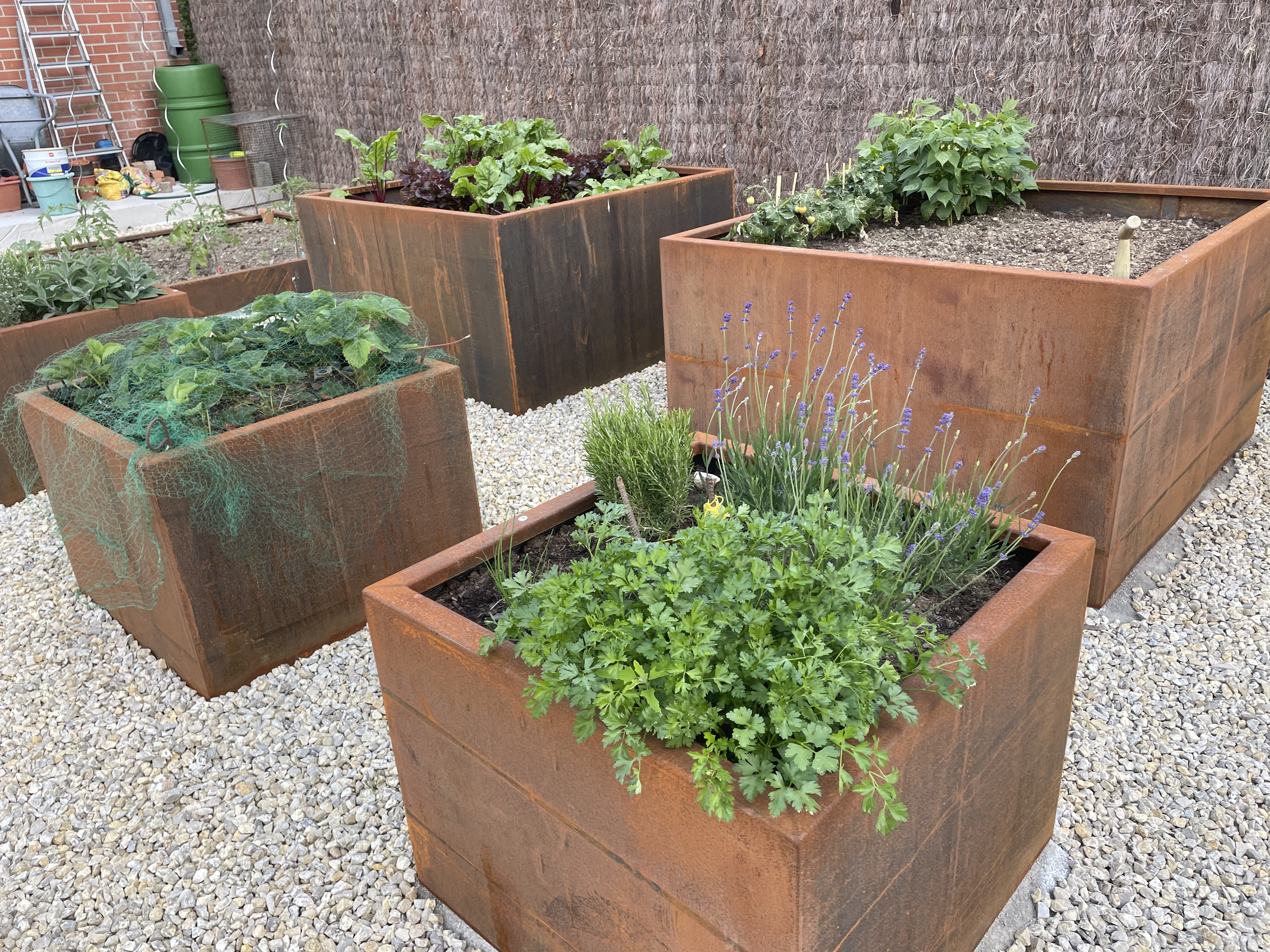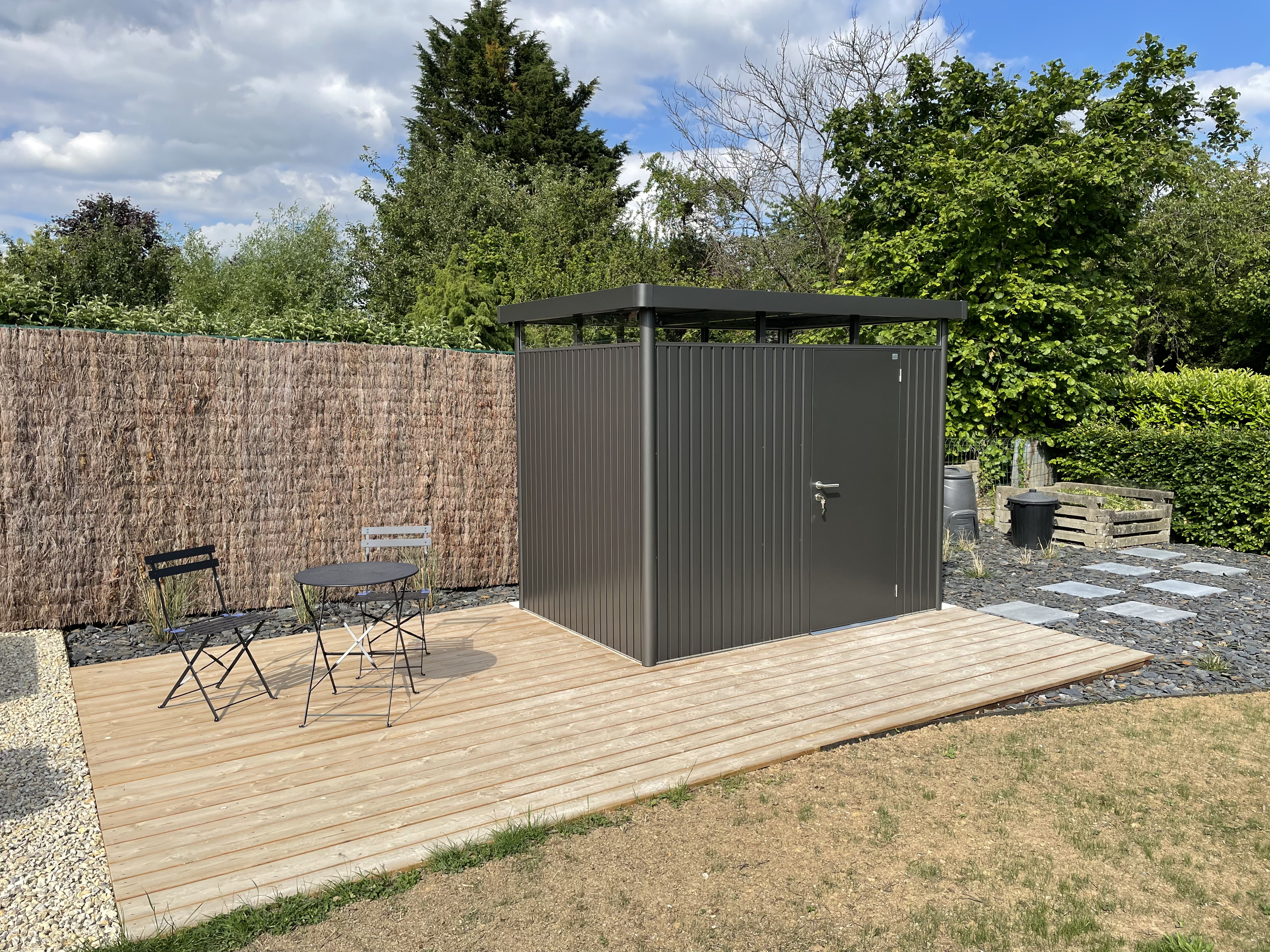 Aménagement potager & coin repos avec abri et plantations